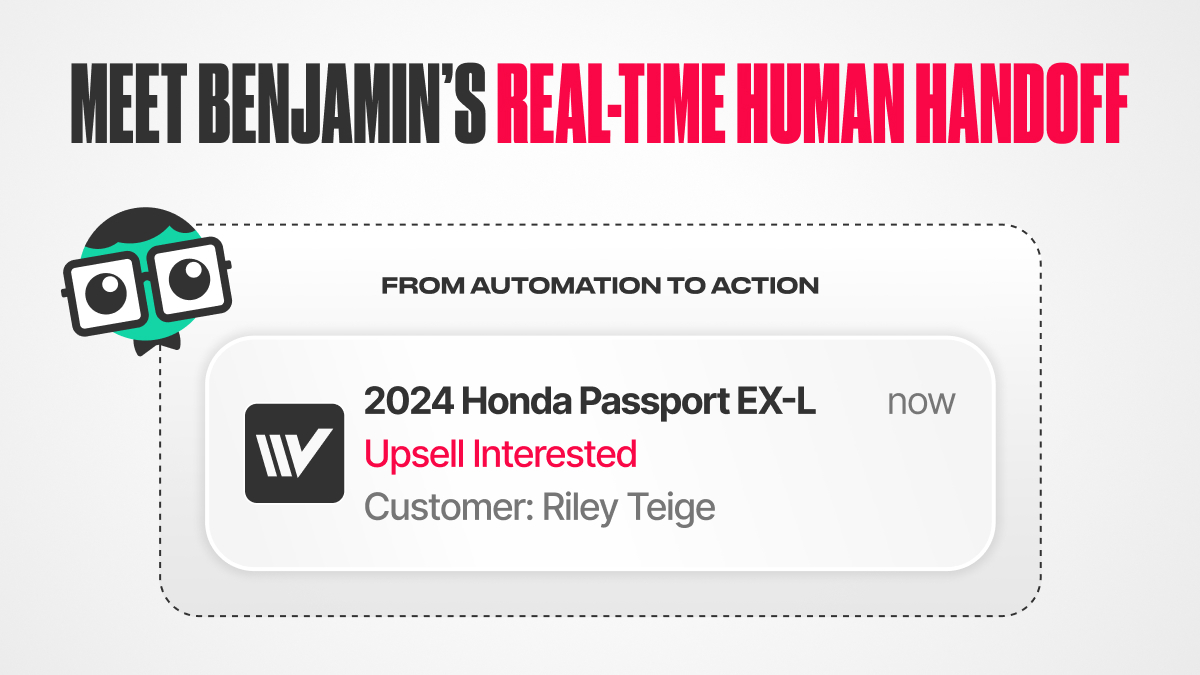 Built into Buy Center Pro and co-developed with Spyne.ai, Benjamin helps dealerships create 24/7 customer engagement that feels real, drives conversions, and builds loyalty. Benjamin targets, engages, and activates potential buyers and sellers so your team can focus on only the most serious opportunities.